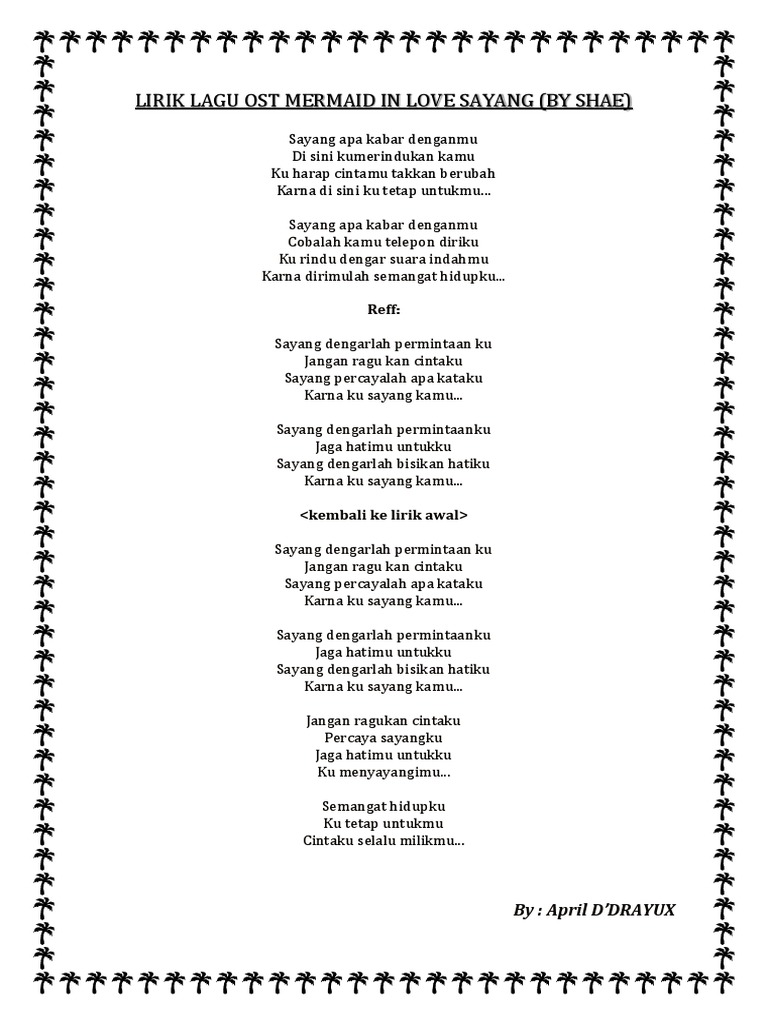 Lirik Cinta Untukmu Sayang / Original lyrics of untukmu sayang song by amuk. Lirik Cinta Untukmu Sayang - Cinta untukmu sayang artist :