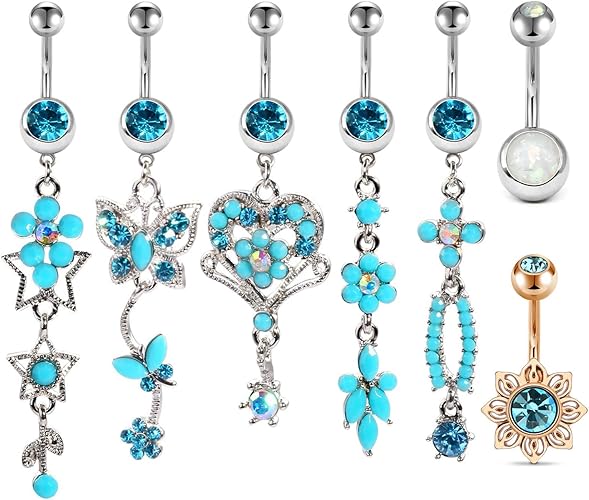 Amazon Com D Bella Belly Button Rings Surgical Steel 14g Dangle Belly Ring Navel Piercings Jewelry For Women Girls 10mm Belly Bar Jewelry - Crystal star flower navel belly bar.