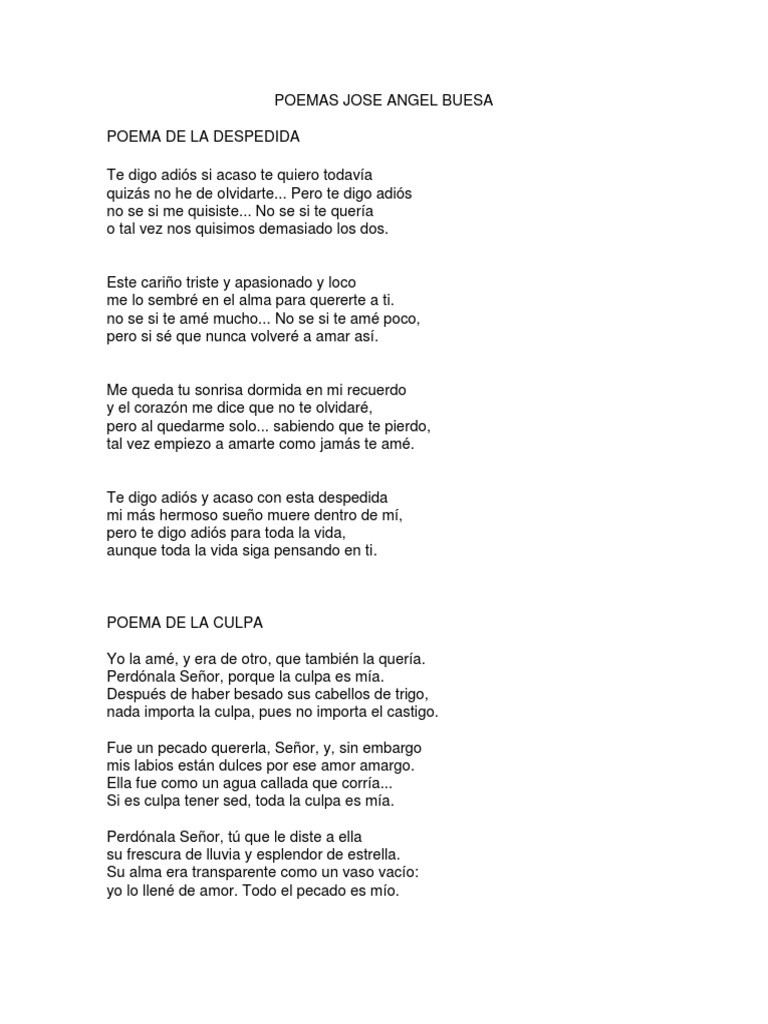 Poemas De Amor Jose Angel Buesa : Te digo adios, y acaso te quiero todavia. Poemas De Amor Jose Angel Buesa / Nadie tiene culpa de que el tiempo pase, y el tiempo paso….